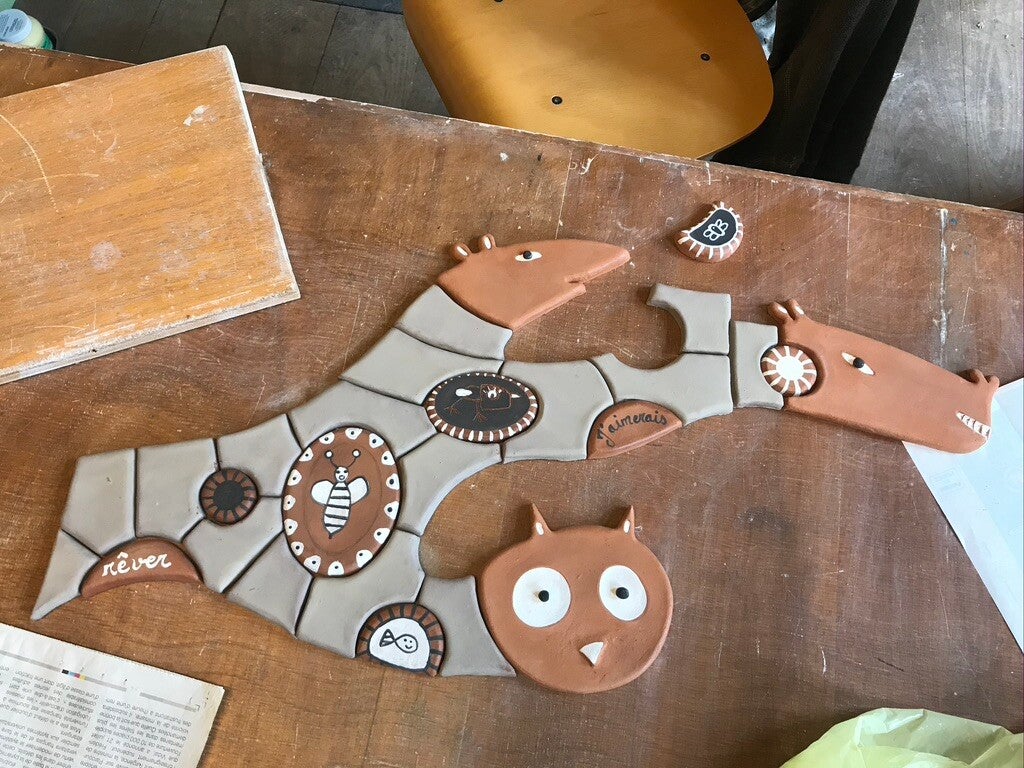 C’est pendant le confinement de 2020 que j’ai réalisé en céramique cet arbre à souhait, y intégrant les dessins des enfants.