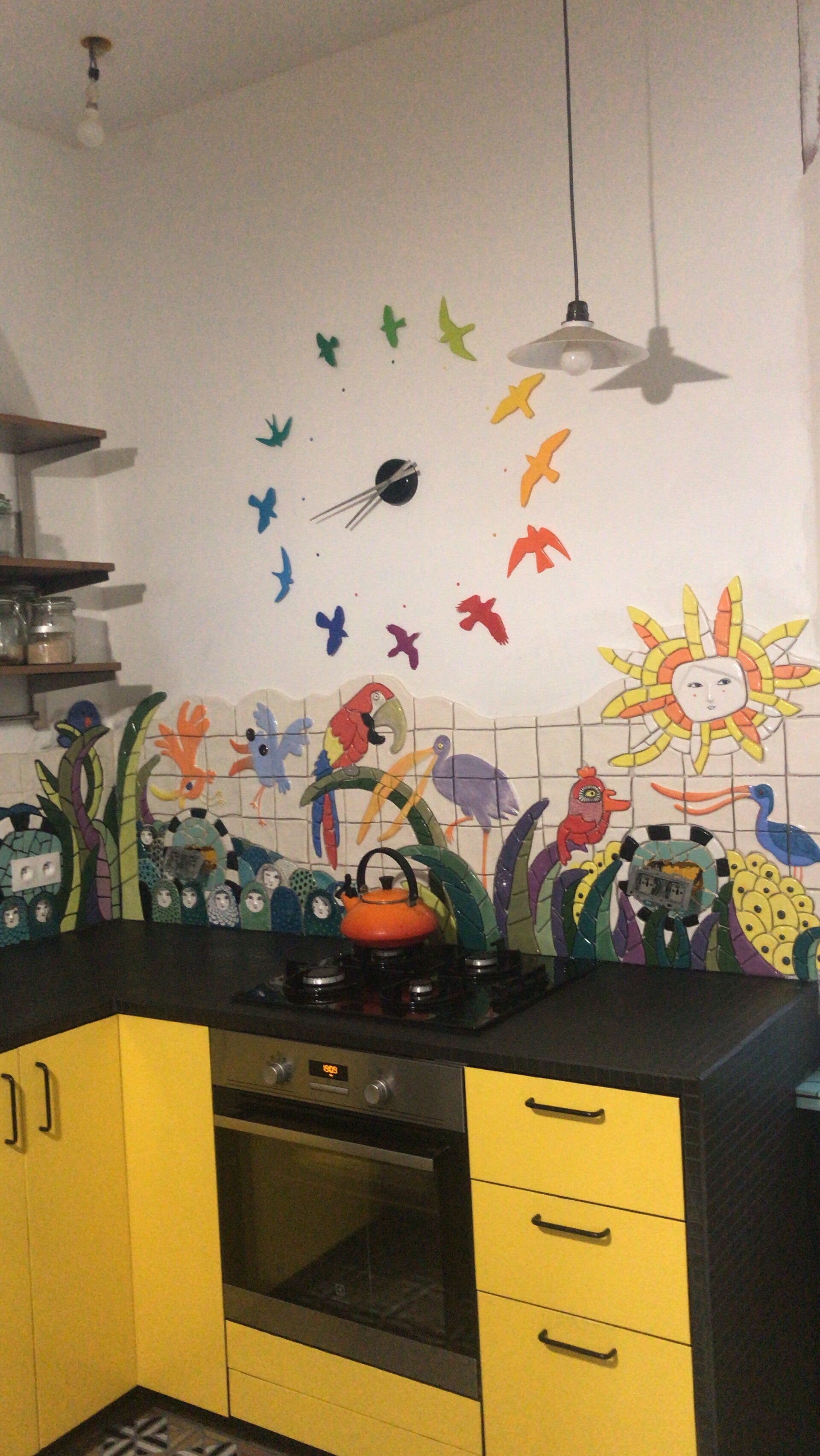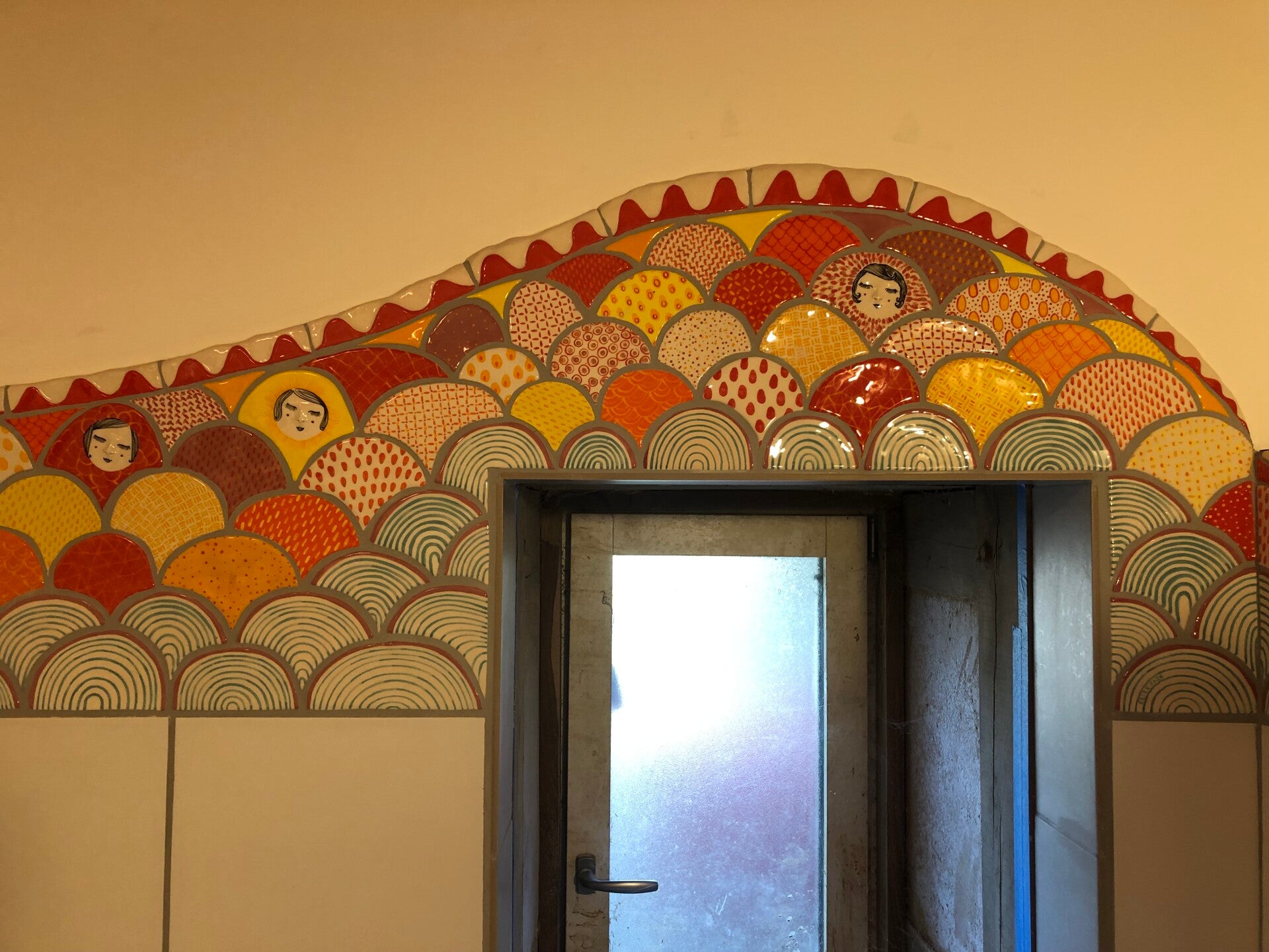 Visiter des espaces singuliers, très personnels, m’a toujours beaucoup émue, j’aime ce mélange de création, d’artisanat, d’usuel, de fantaisiste. Ce mélange de l’utile et du beau. Transposer mes petites matriochkas en carrelage, continuer à faire foule, ensemble, parler du multiple, du singulier et mettre du beau toujours dans le quotidien.