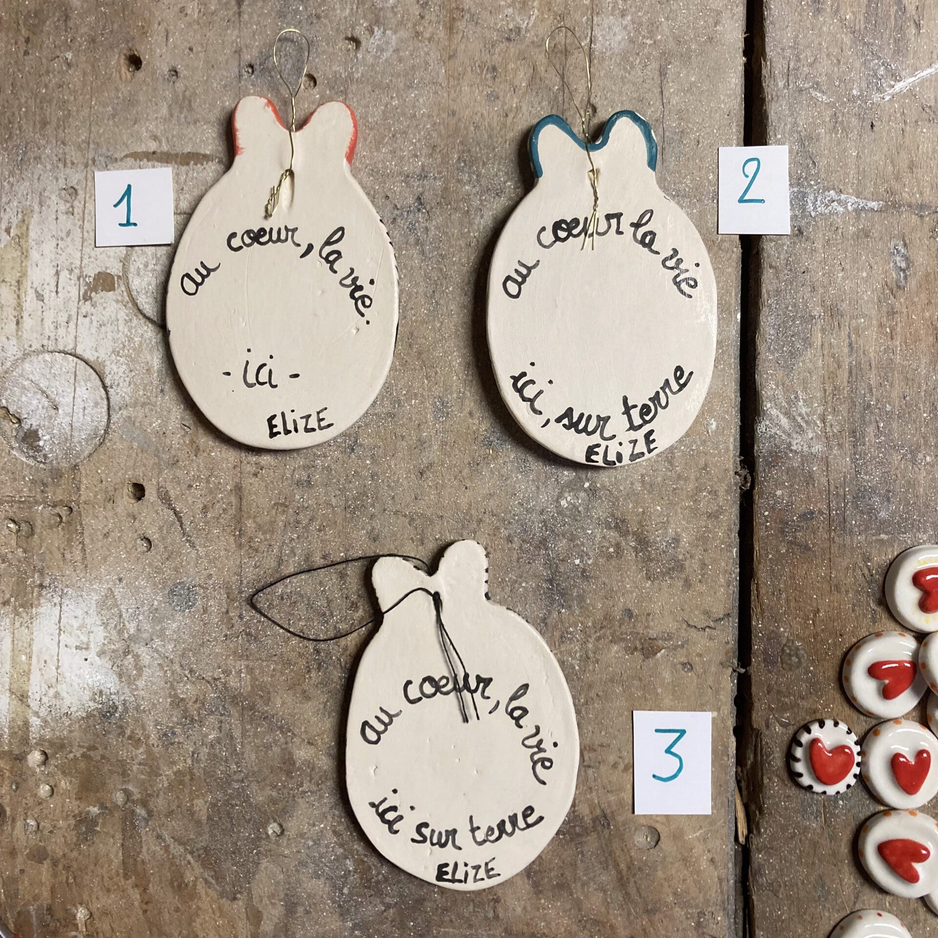 Je suis un objet décoratif en céramique. Petite faïence, mes décors sont sous émail.