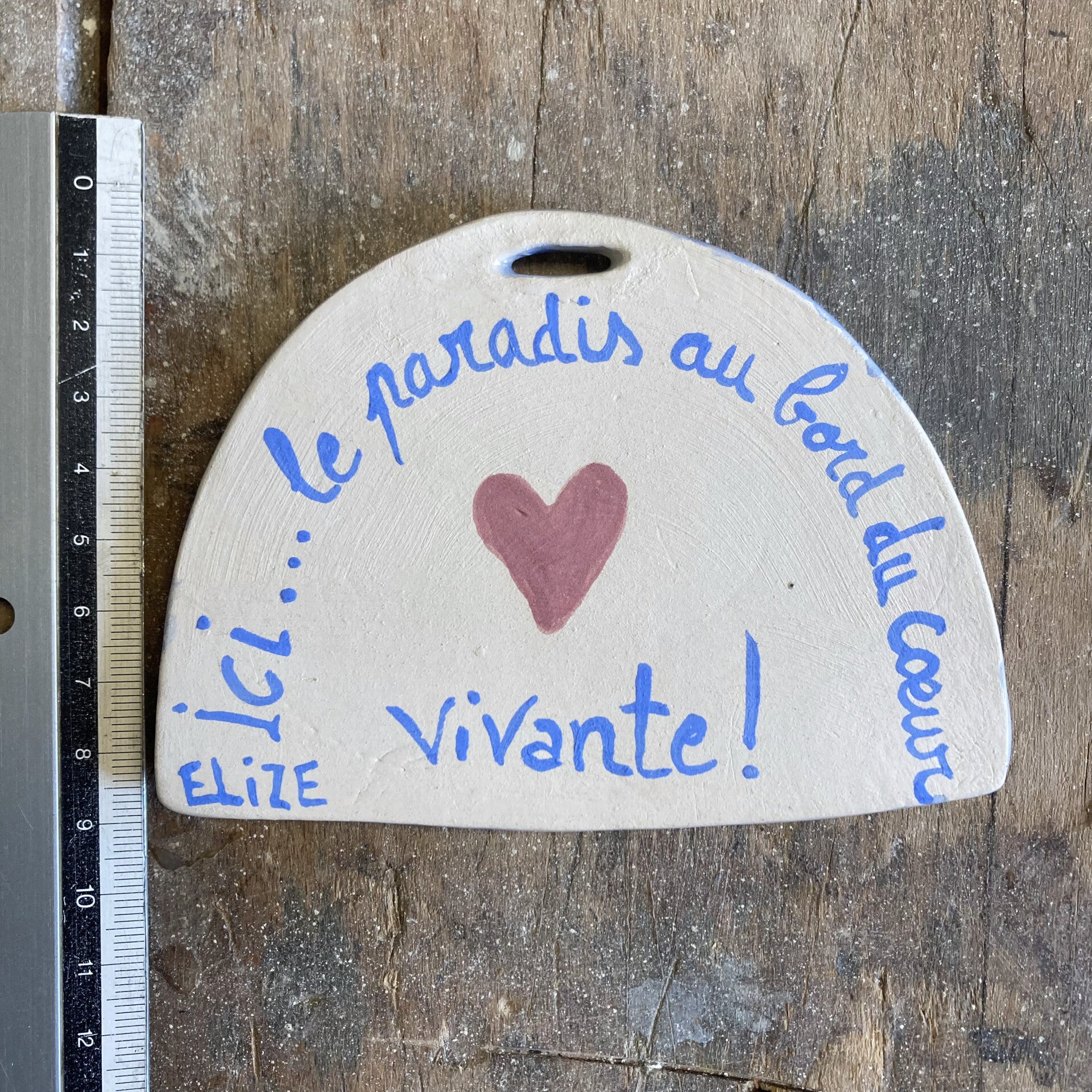 Petite décoration murale en céramique pour mettre un petit coin de paradis dans la vie. Faïence, décors sous émail.